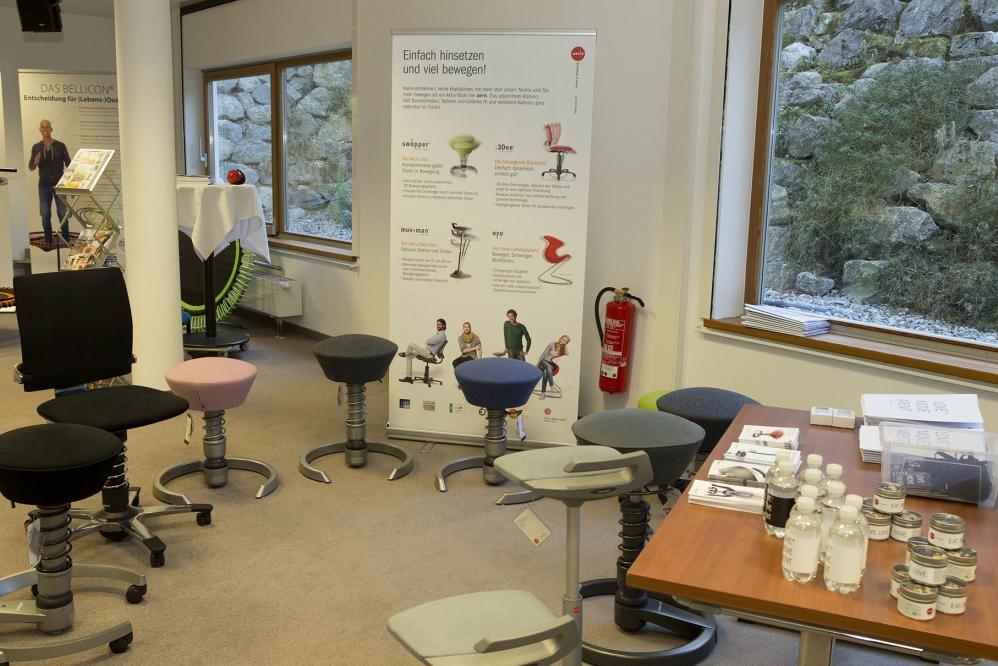 Bewegen, ist halt für unser Leben sehr, sehr wichtig, dass wir nicht starr irgendwo sitzen, deswegen haben sie das auch in Büromöbel reingetan, sie haben das aber auch in Schwingstäben, die man speziell auf sich einstellen kann.