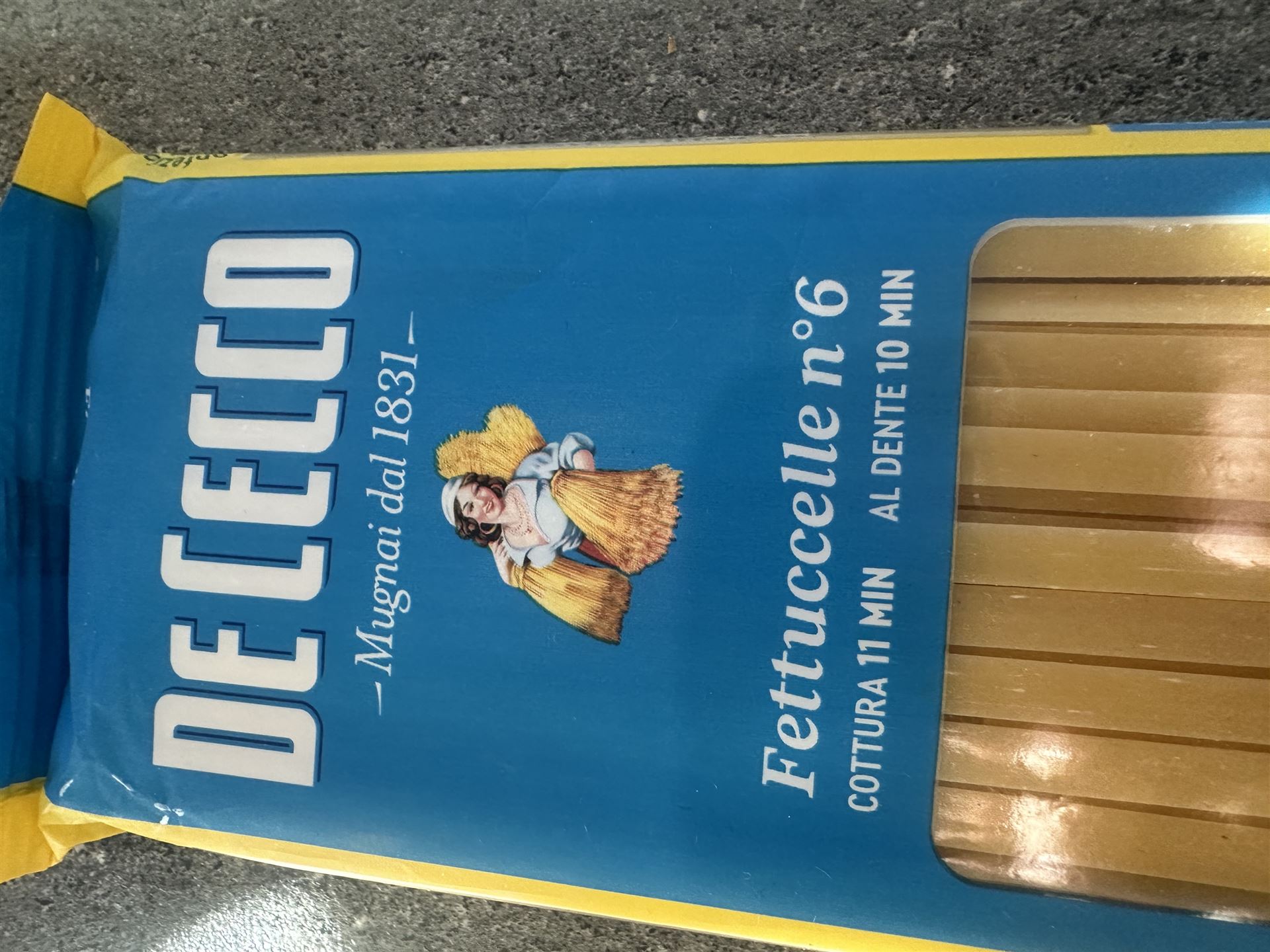 250 Gramm Pasta, z.B. Tagliatelle oder Fettuccelle, (Ich nehme gerne de cecco, aber auch Buitoni, Barilla oder Rummo!)