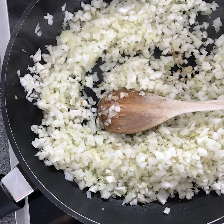 Fenchel und Zwiebeln fein hacken, dann zusammen in 1 EL Öl leicht andünsten.