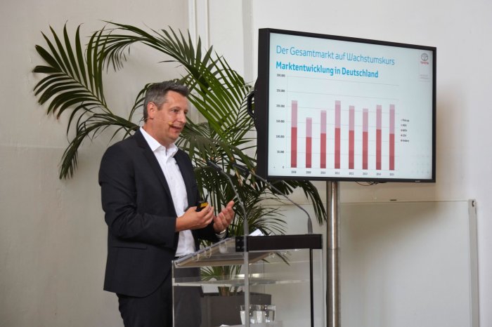 Zielgruppe ist ganz klar das Handwerk in Deutschland. Da haben wir ein breit gefächertes Angebot. Wir kommen da mit drei Längen, angefangen mit einer neuen PROACE Compact-Version, die ist relativ kurz für das Segment. 4,60 Meter lang, das ist ungefähr so lang wie ein Mittelklasse-Kombi. Der kann aber richtig was laden. Der hat 4,6 Kubikmeter Ladevolumen und der schleppt bis zu einer Tonne weg. Üblich bei der Größenordnung sind so 600 bis 700 Kilogramm. Also der schafft schon richtig was. Darüber hinaus gibt es zwei weitere Längen, einmal die L1 und die L2 Länge. L2 geht so bis 5,30 Meter, L1 hört so bei 5 Metern auf.