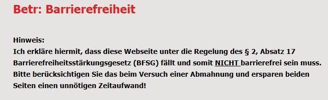 Ob man das für diesen Gesetzestext auch erwarten darf, wage ich wirklich zu bezweifeln. Der juristische Laie wird es kaum verstehen, er hat schon die Überschrift nicht verstanden, schon gar nicht, wenn man sich noch die von der EU eigentliche Gesetzesüberschrift vor Augen führt, und nach der groben Lektüre der Webseite möglicherweise wird er sofort alles vom Netz nehmen, weil er gar nichts mehr versteht. Und da es eben aus meiner Sicht auch der große Fehler des Gesetzgebers, denn wenn der Gesetzgeber es wirklich ernst meinen würde mit der Barrierefreiheit, dann käme sofort an allererster Stelle: >> Dieser Gesetzestext betrifft nur Unternehmen, die größer sind als 2 Million € Jahresumsatz und mehr als zehn Beschäftigte haben.<<