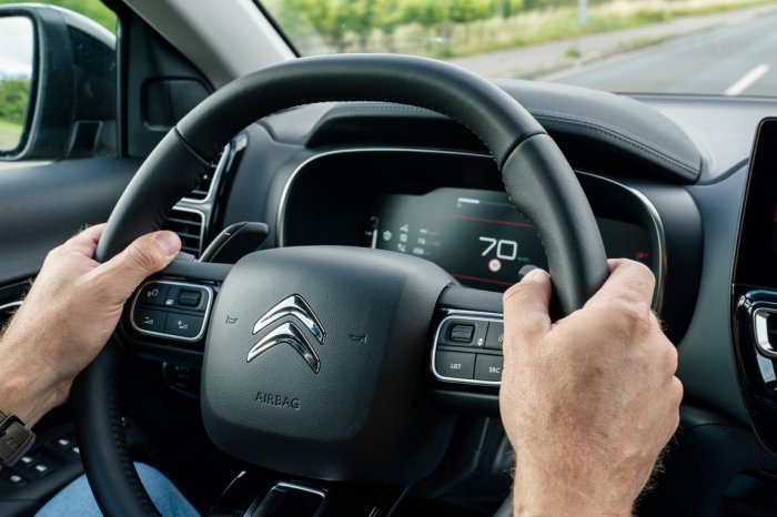 Obwohl es sich bei unserem Testkandidaten um den C5 Aircross YOU handelt, also die günstigste Ausstattungslinie, ist man keineswegs spartanisch unterwegs. Denn selbst in dieser Ausstattungslinie findet man – neben wichtigen Punkten wie Klimaautomatik inkl. Air Quality System, einem kamera- und sensorgesteuerten aktiven Notbremsassistenten, einem aktiven Spurhalte-Assistenten und Geschwindigkeitsregler und -begrenzer – auch das Citroën Connect Audio-System DAB, Einparkhilfe hinten, einen 20-cm großen Touchscreen und Verkehrszeichenerkennung- auch noch Features wie elektrisch einstell- und beheizbare Außenspiegel, elektrische Fensterheber vorne und hinten und die elektrische Parkbremse. Die automatische Einschaltung für Fahrlicht und Frontscheibenwischer ist natürlich ebenso vorhanden wie die bußgeldsparende Bluetooth®-Freisprecheinrichtung,