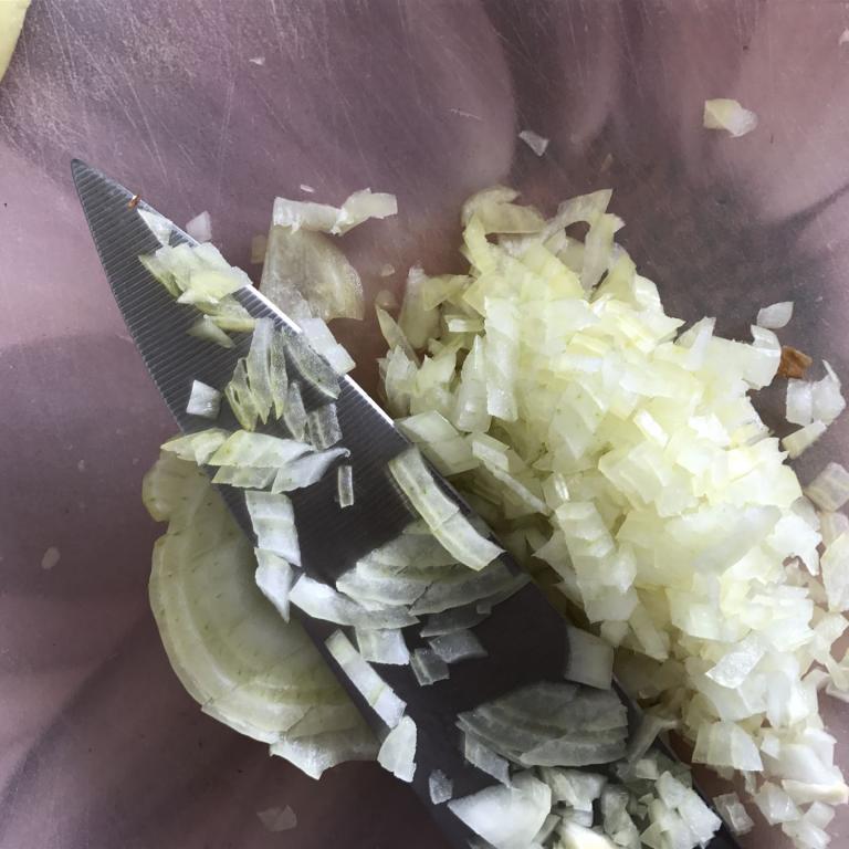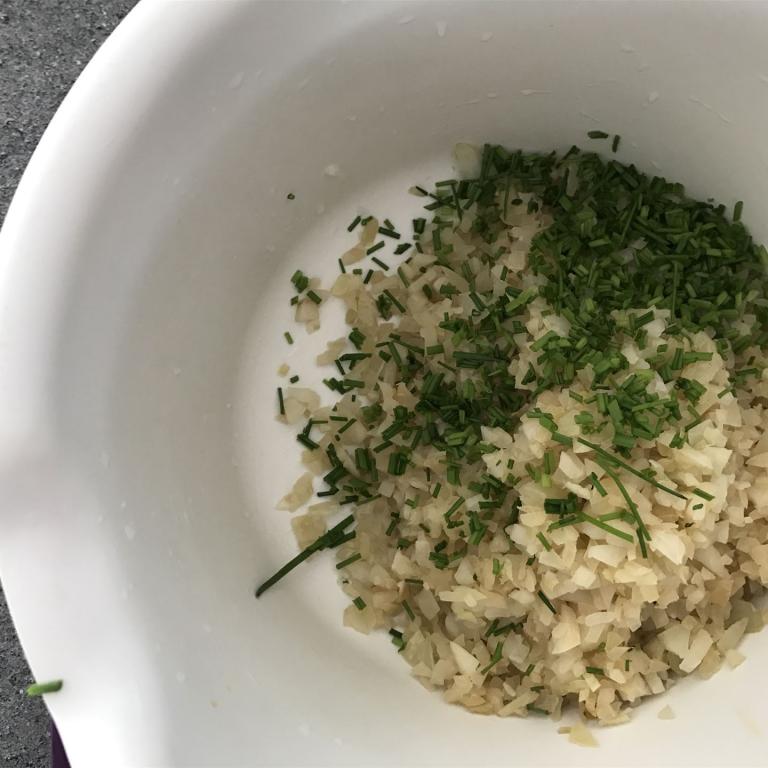 Fenchel und Zwiebeln fein hacken, dann zusammen in 1 EL Öl leicht andünsten.